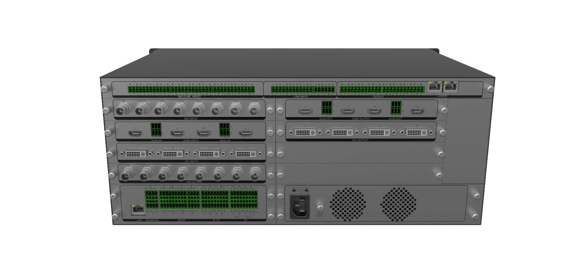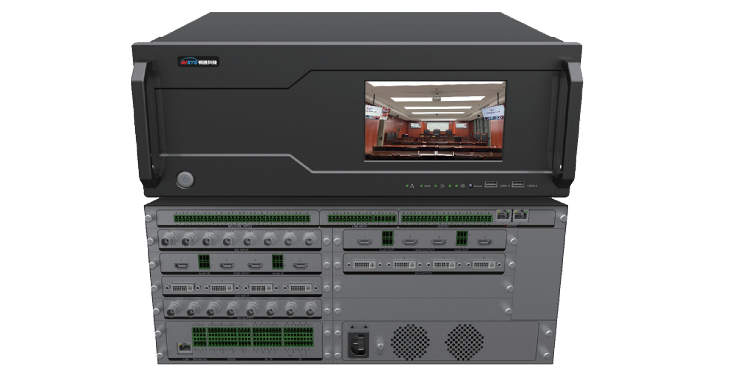 AS-AT4P是一款应用于标准法庭的设备。主机以ALL-IN-ONE的设计理念,软件可视化操作界面平台、模块化插卡设计、旨在为法院客户提供专业的庭审设备,AVCRTM六合一:将音频处理器A、视频无缝混矩V、可编程中控C、录播编解码R、视频会议终端T、多方互动MCU综合于一体。