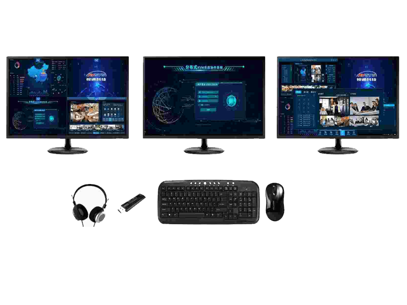 KVM代表着键盘(Keyboard)、显示器(Video)和鼠标(Mouse),即利用一组键盘、显示器和鼠标实现对多台设备的控制,在远程调度监控方面发挥着重要作用。但是随着现代化指挥、调度中心的应用,需要多套键盘、鼠标和显示器控制多台设备,同时还需要与大屏幕进行视频同步,2121非凡科技在AS-ADS 4K分布式系统中加入了智能KVM坐席管理功能。