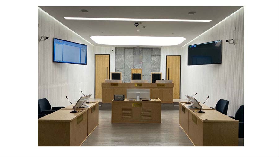 2121非凡科技法庭系统主要用于庭审过程中对当事人、证人、审理员等法庭陈述声音、笔录内容、现场图像、实物证据、多媒体证据的实时采集录制,同步刻录,为审判的事后查证、研究、交流提供直观、详实的原始资料。科技法庭管理系统可与上级媒体平台进行对接,对接后通过后台系统可进行远程庭审直播、点播,案件查看,案件统计分析,法庭管理,笔录查看,庭审指导等功能。主要应用于法庭、模拟法庭、劳动仲裁庭、知识产权中心审理庭、调解室、远程提讯室。
